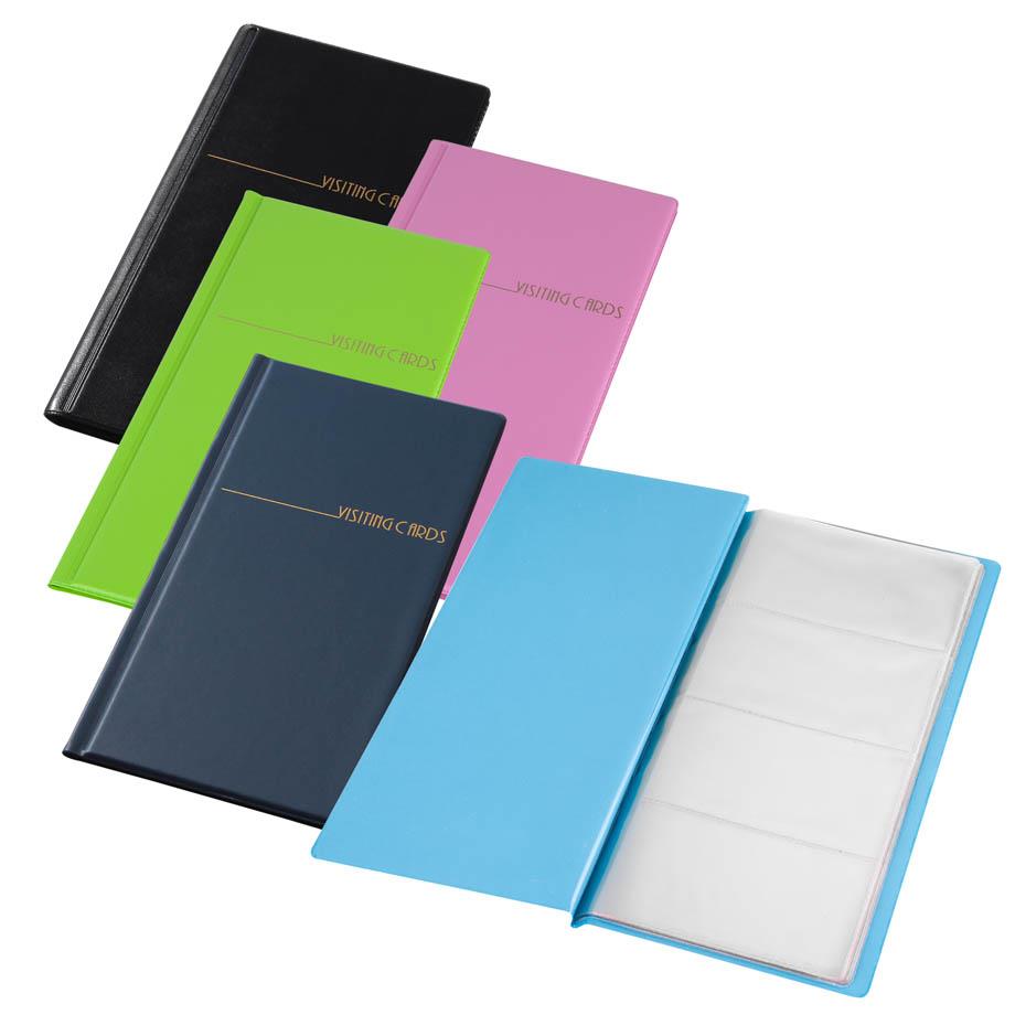 Cenovno ugoden album za vizitke s 96 vložnimi žepki. Vložne mape za vizitke so privarjene.
