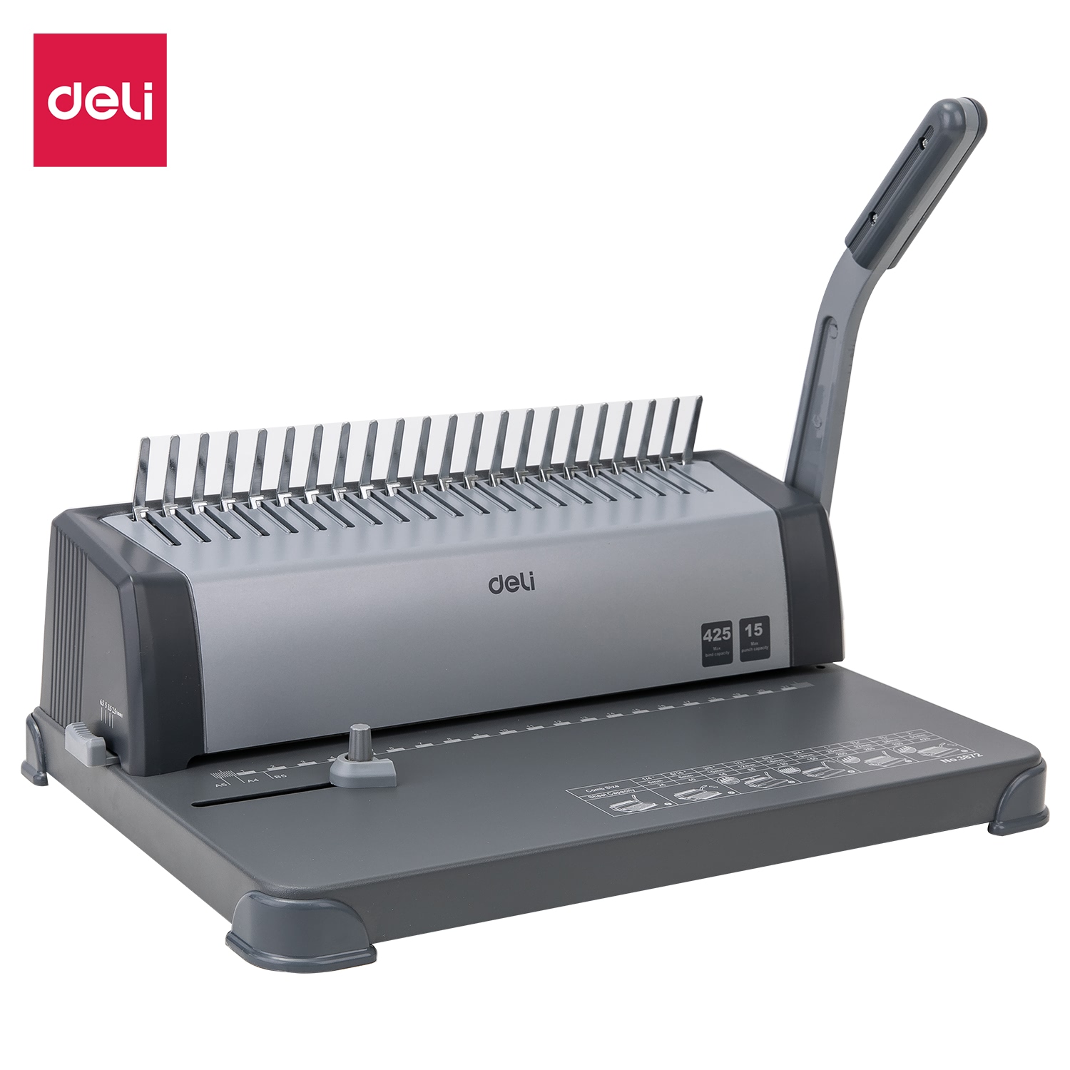 Aparat za špiralno vezavo Deli je namenjen vezavi listov s plastično špiralo. Idealen je za srednje velike pisarne z redno potrebo po vezavi. Kapaciteta luknjanja je 15 listov 80 g papirja v razmerju 2:1 (21 nožev). Naenkrat lahko vežemo 425 listov s špiralo do velikosti 51 mm.