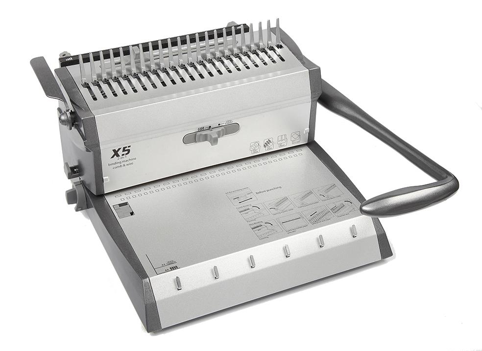 Aparat za špiralno vezavo X5 je namenjen vezavi listov s plastično špiralo ali žično kovinsko špiralo. Kapaciteta luknjanja je 20 listov papirja oziroma 1 list PVC folije v razmerju 2:1 (21 nožev) za plastične špirale ali v razmerju 3:1 (34 nožev) za žične špirale. Naenkrat lahko vežemo 450 listov s plastično špiralo ali pa do 135 listov z žično špiralo. Globina luknjanja je nastavljiva od 2 do 6 mm.