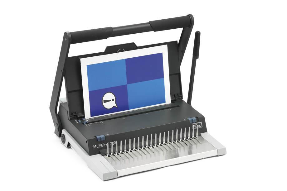 Aparat za špiralno vezavo MultiBind 220 je namenjen vezavi listov s plastično špiralo ter luknjanju dokumentov na 4 luknje. Idealen je za srednje velike pisarne z redno potrebo po vezavi in luknjanju. Kapaciteta luknjanja je 20 listov papirja v razmerju 2:1 (21 nožev). Naenkrat lahko vežemo 450 listov s špiralo do velikosti 51 mm.