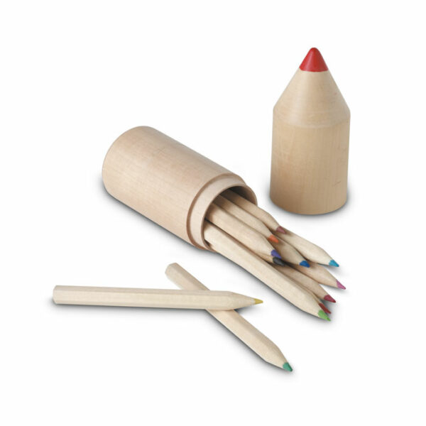 Set dvanajstih barvic v leseni škatli v obliki svinčnika.