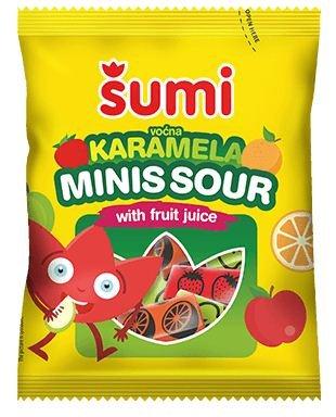 Šumi predstavlja nove karamela bonbončke Minis sour – v mini obliki in kiselkastih sadnih okusih! Z mehkimi bonboni se lahko posladkate v 3 okusih: vrtna jagoda, sočna pomaranča in zeleno jabolko.