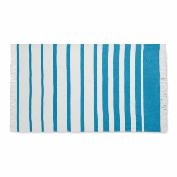 Hamam brisača iz recikliranih tkanin. 70 % recikliranega bombaža in 30 % recikliranega poliestra SEAQUAL® PREJA. 300 gr/m². SEAQUAL INITIATIVE sodeluje pri čiščenju oceanov po vsem svetu, da poveča vrednost odpadkov, ki jih predelajo. Izdelano v EU.