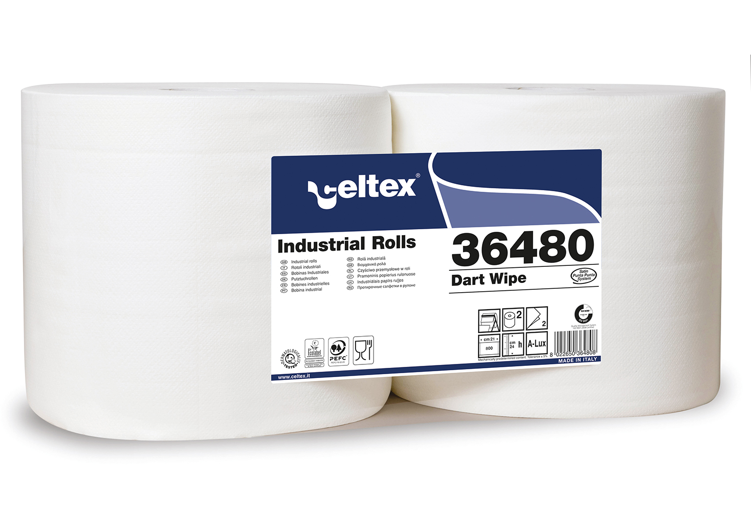 Papirnata rola bobina -Dart Wipe, 800-listna, je izredno vpojna brisača, zaradi česar je vsak list bolj odporen na mokro, tako da ga je mogoče ponovno uporabiti, kar ima za posledico prihranek stroškov in manj odpadkov. Uporabljamo jo v različnih okoljih od čistilnih podjetij do industrijskih mehaničnih tovarn, od garaž in delavnicah do profesionalnih kuhinj.