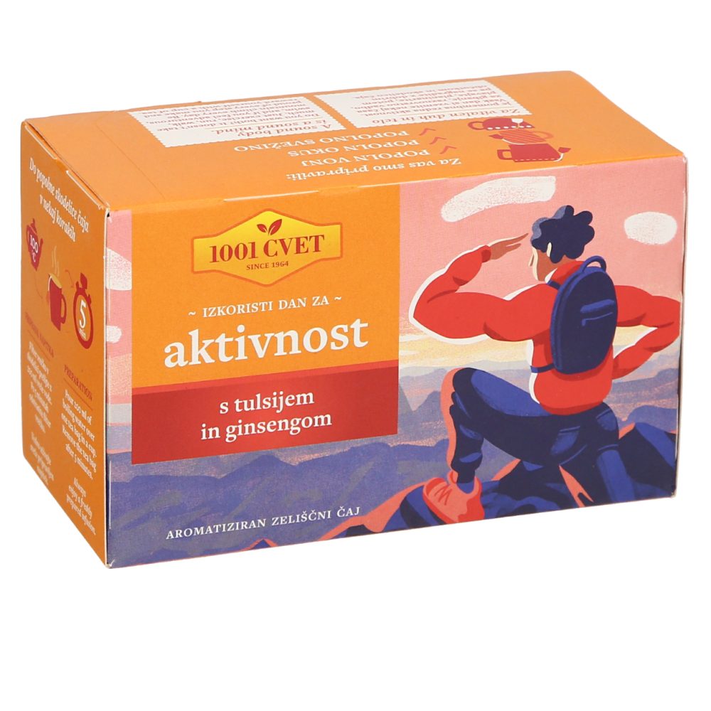 Za vsakodnevno spodbudo in aktivacijo so namešali čaj 1001 CVET AKTIVNOST. Ta vsebuje tulsi, poimenovan tudi sveta bazilika, ki odpira srce in um ter posreduje energijo ljubezni in predanosti, krepi vero, sočutje in jasnost. Dodana sta mu ginseng in mate; južnoameriška rastlina, ki vsebuje kofein.