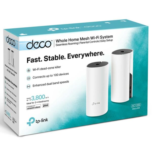 Zahvaljujoč tehnologiji TP-Link Mesh vam DECO M4 AC1200 zagotavlja popolno povezavo v hiši z neprekinjenim Wi-Fi povezovanjem preko brezžičnega sodelovanja več enot. Z Wi-Fi pokritostjo do 260 m2 je popolna rešitev za domače omrežje WLAN. Ni nadležnih iskanj za stabilno povezavo.