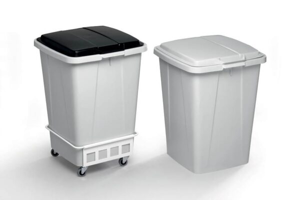 Praktičen robusten voziček za dva koša Durable Durabin 40l. Voziček je izdelan iz kovine obdane s platično maso. Ima štiri kolesa, ki se prosto obračajo.