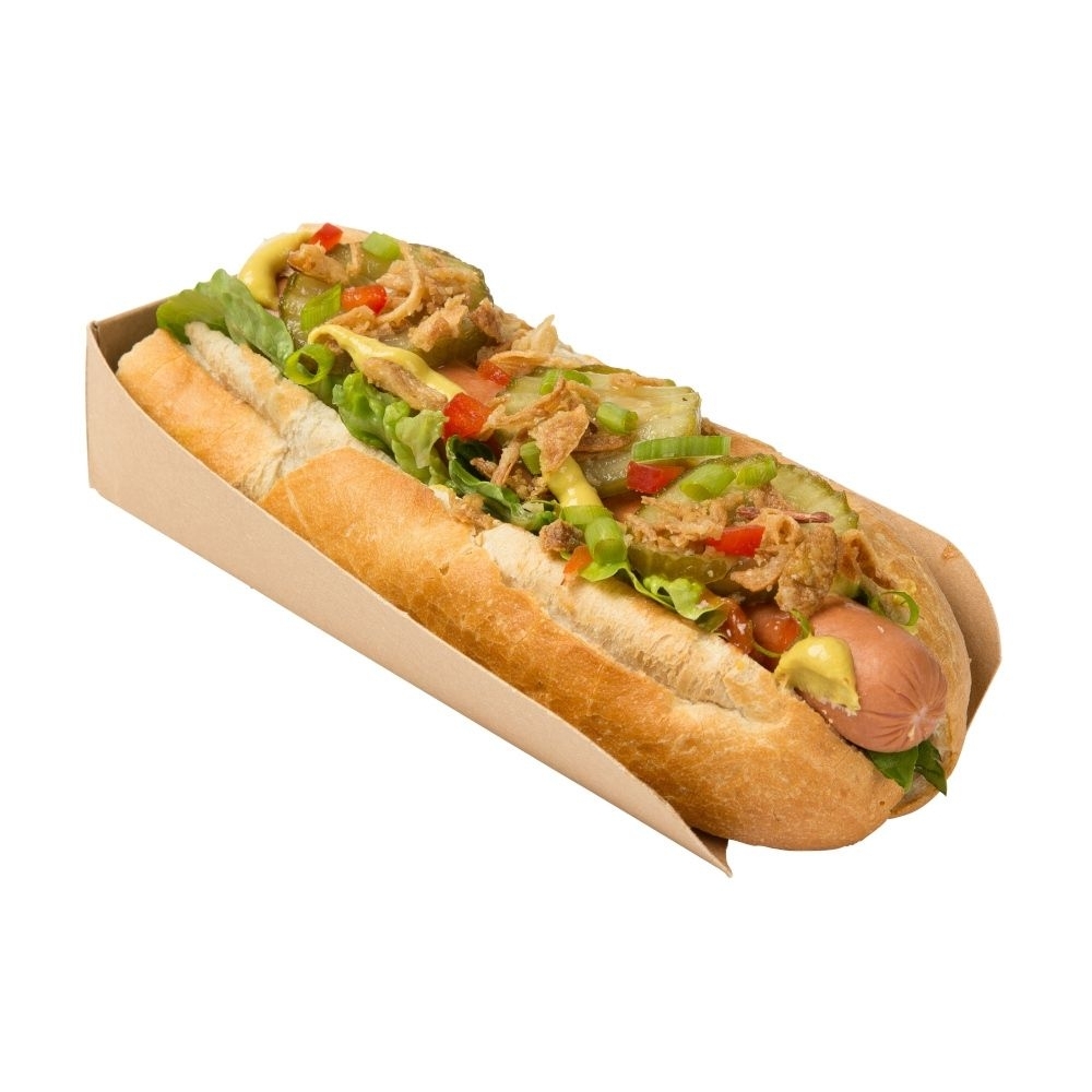 Karton za HOT-DOG je biorazgradljiv in primeren za kompostiranje. Izdelek sledi najvišjim standardom kakovosti glede varnosti hrane, označevanja, sledljivosti, ipd.