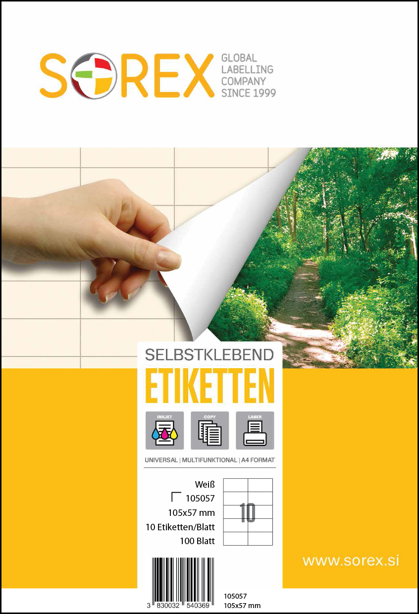 Bele samolepilne etikete so primerne za tiskanje na vse vrste laserskih in ink-jet tiskalnikov ter fotokopirnih strojev. Uporabljamo jih za tiskanje naslovov poštnih pošiljk, črtnih kod, deklaracij, za označevanje lesenih, plastičnih, kovinskih in steklenih izdelkov, CD-jev, DVD-jev,…