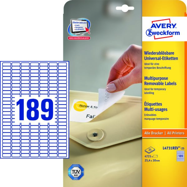 ETIKETE ZWECKFORM 25,4X10 L4731REV 25/1