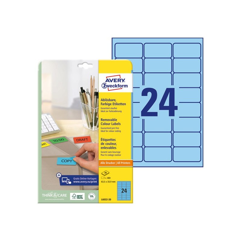Avery Zweckform papirne etikete imajo odstranljivo lepilo in zanesljiv oprijem. Vrhunska oprijemljivost tonerja ali črnila zagotavlja, da se tisk ne packa. Enostavno in hitro oblikovanje etiket z brezplačnim spletnim programom. Okolju prijazno: papir za etikete ima certifikat FSC® – odgovorno upravljanje z gozdovi. Idealne za začasno barvno označevanje.
