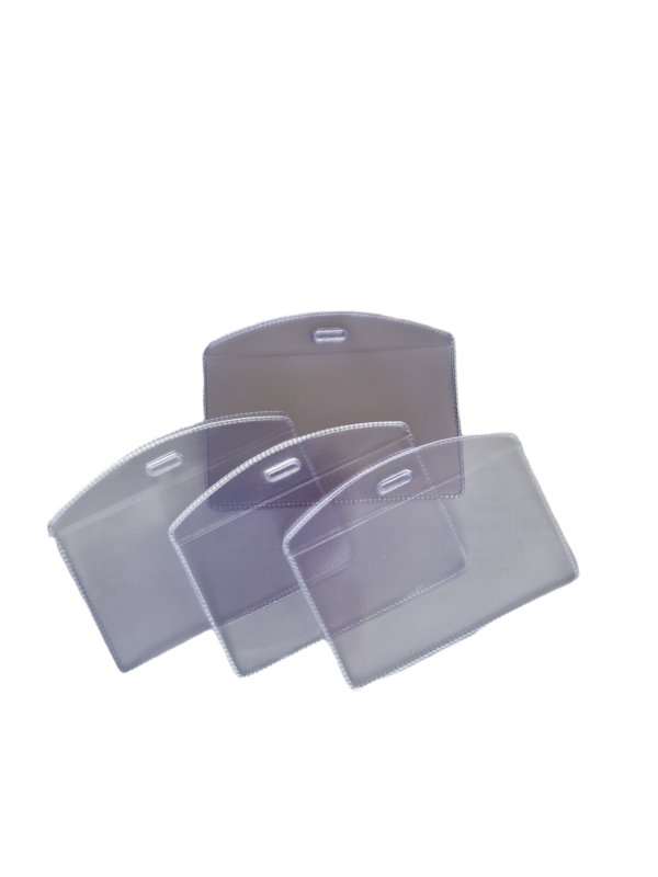 Imenske priponke za vstavljanje imenskih identifikacijskih kartic. Izdelane so iz pvc transparentnega materiala.