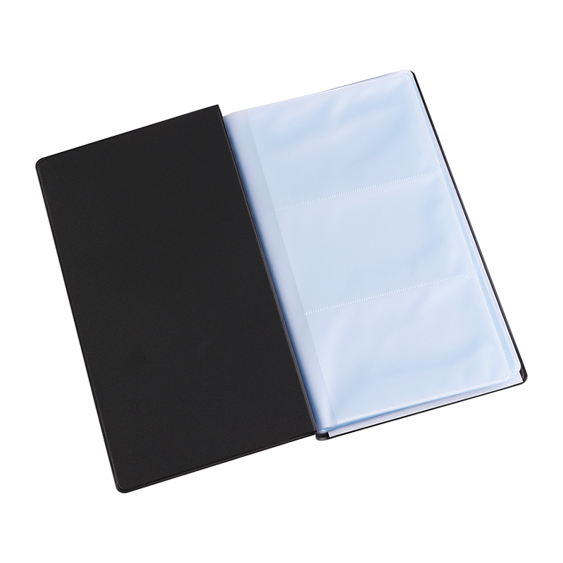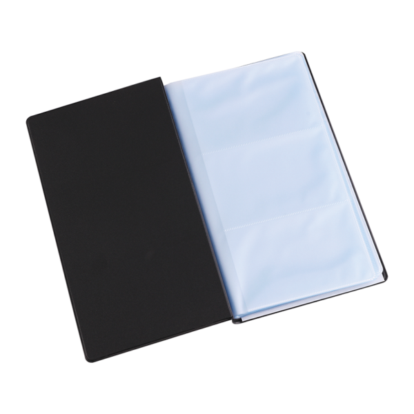 Cenovno ugoden album za vizitke s 180 vložnimi žepki. Vložne mape za vizitke so privarjene.