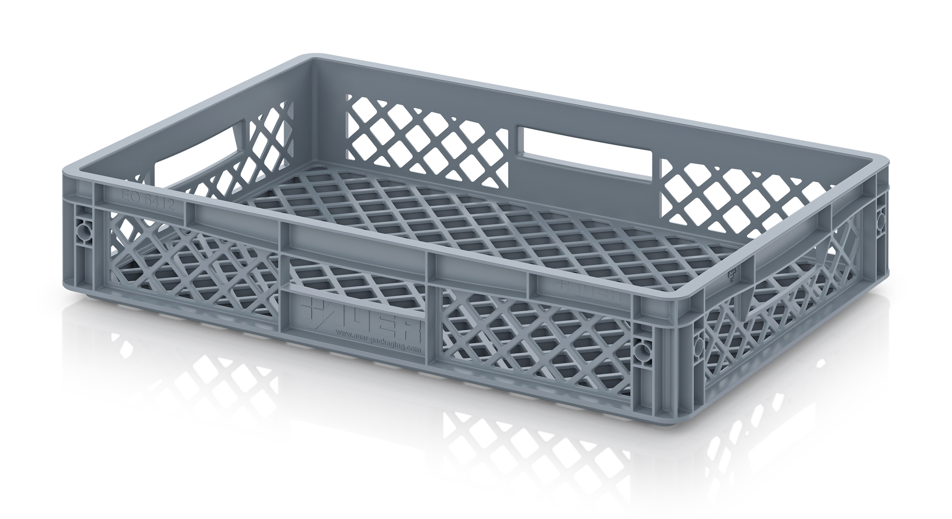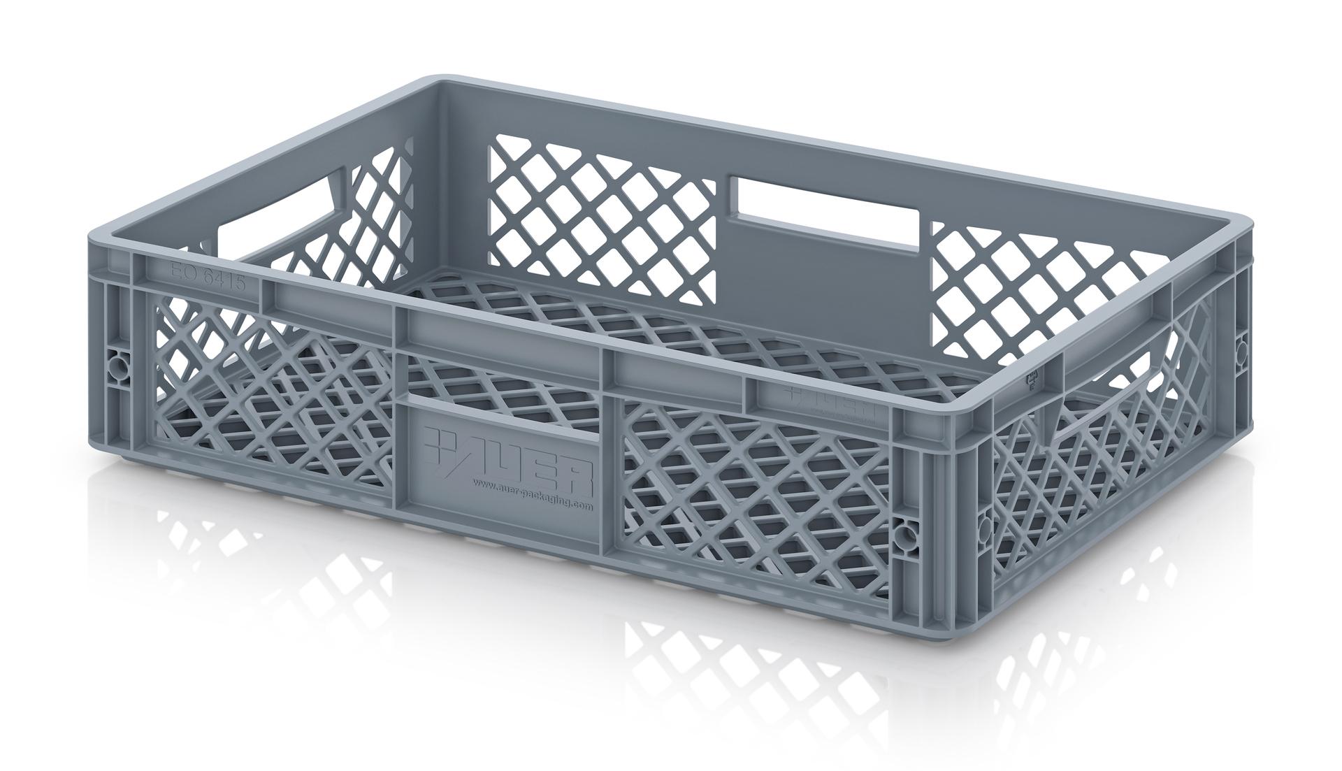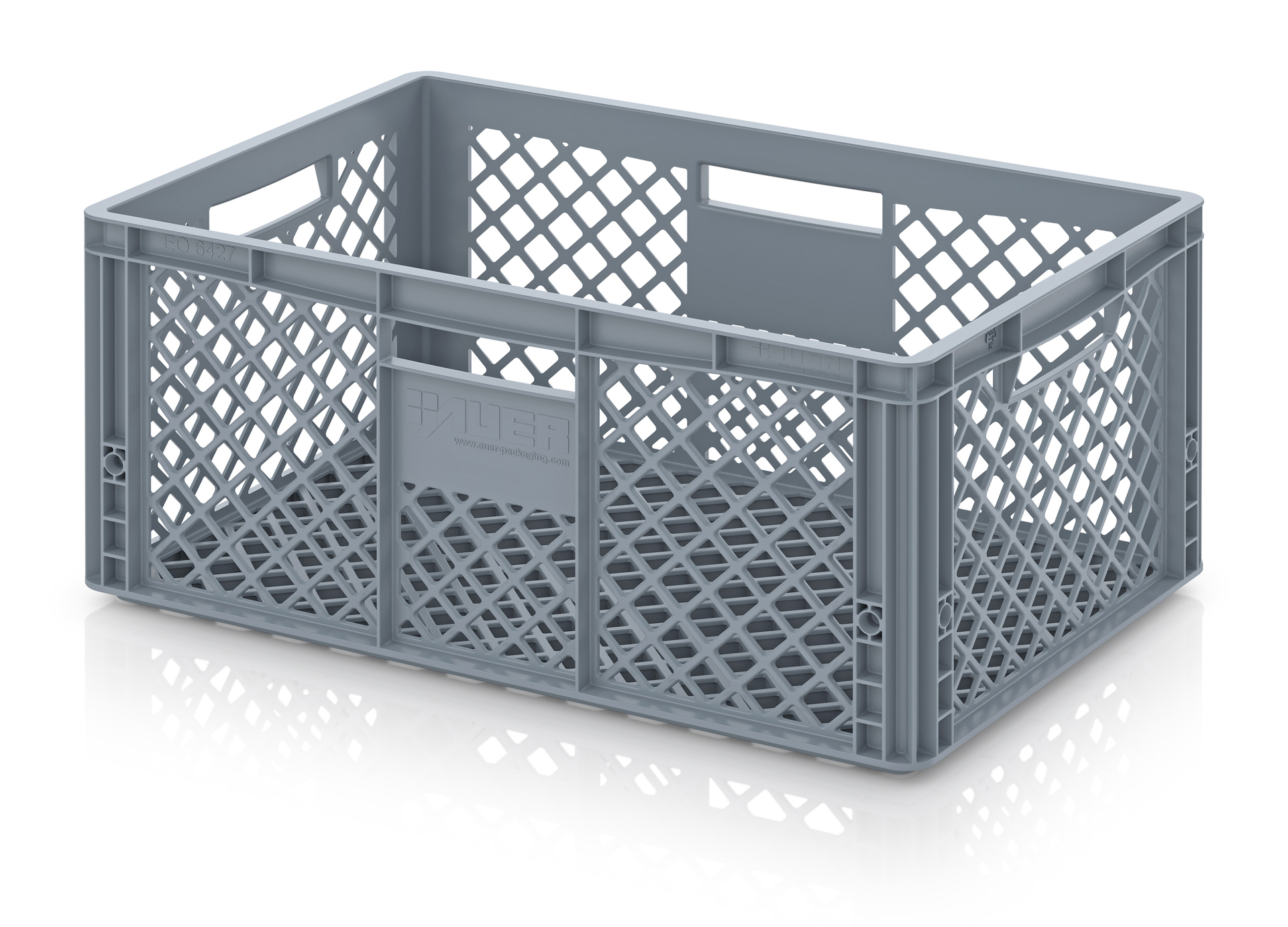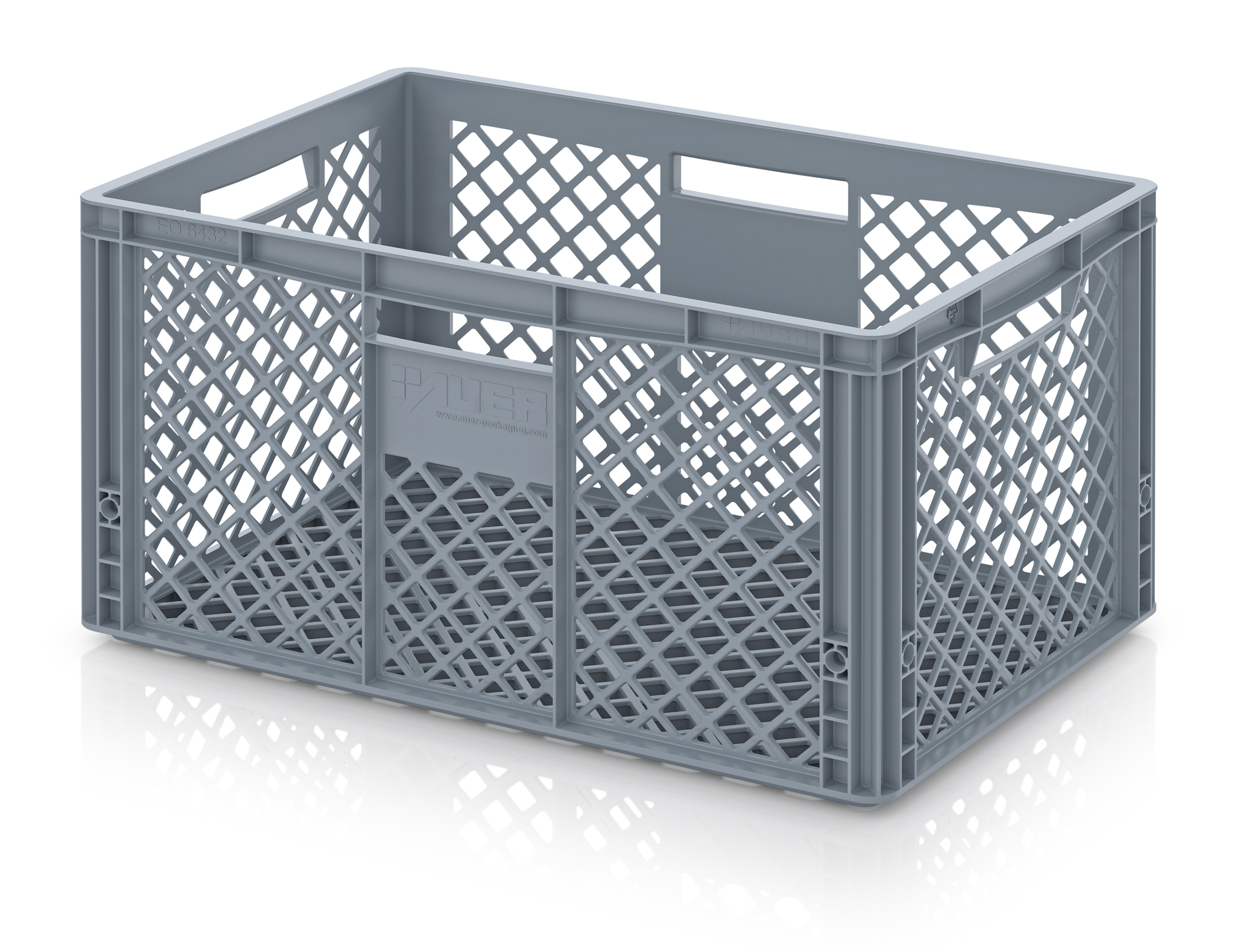 Mrežasti evrozaboj odlikuje njegovo ogrodje, prepustno za zrak in tekočine. Ne glede na to, ali se mora vsebina hitro posušiti, ali pa mora ostati vlažna – ta zaboj je primeren za vse! Higienično brezhibno in preprosto čiščenje, primerno za pomivanje v pomivalnem stroju, možnost skladanja, optimalno kroženje zraka.