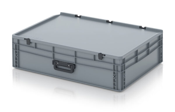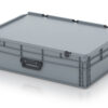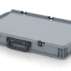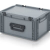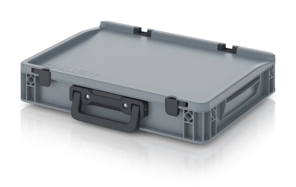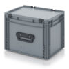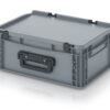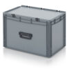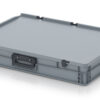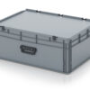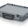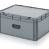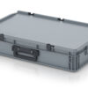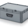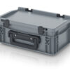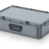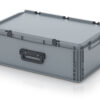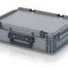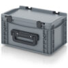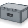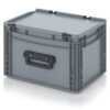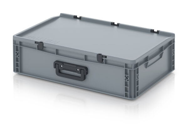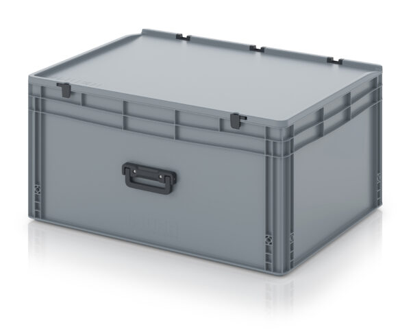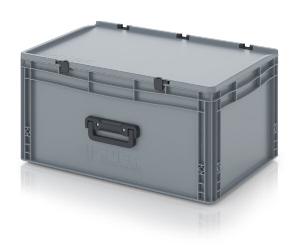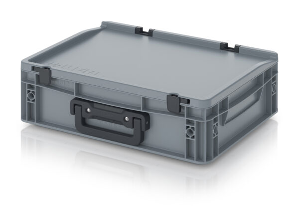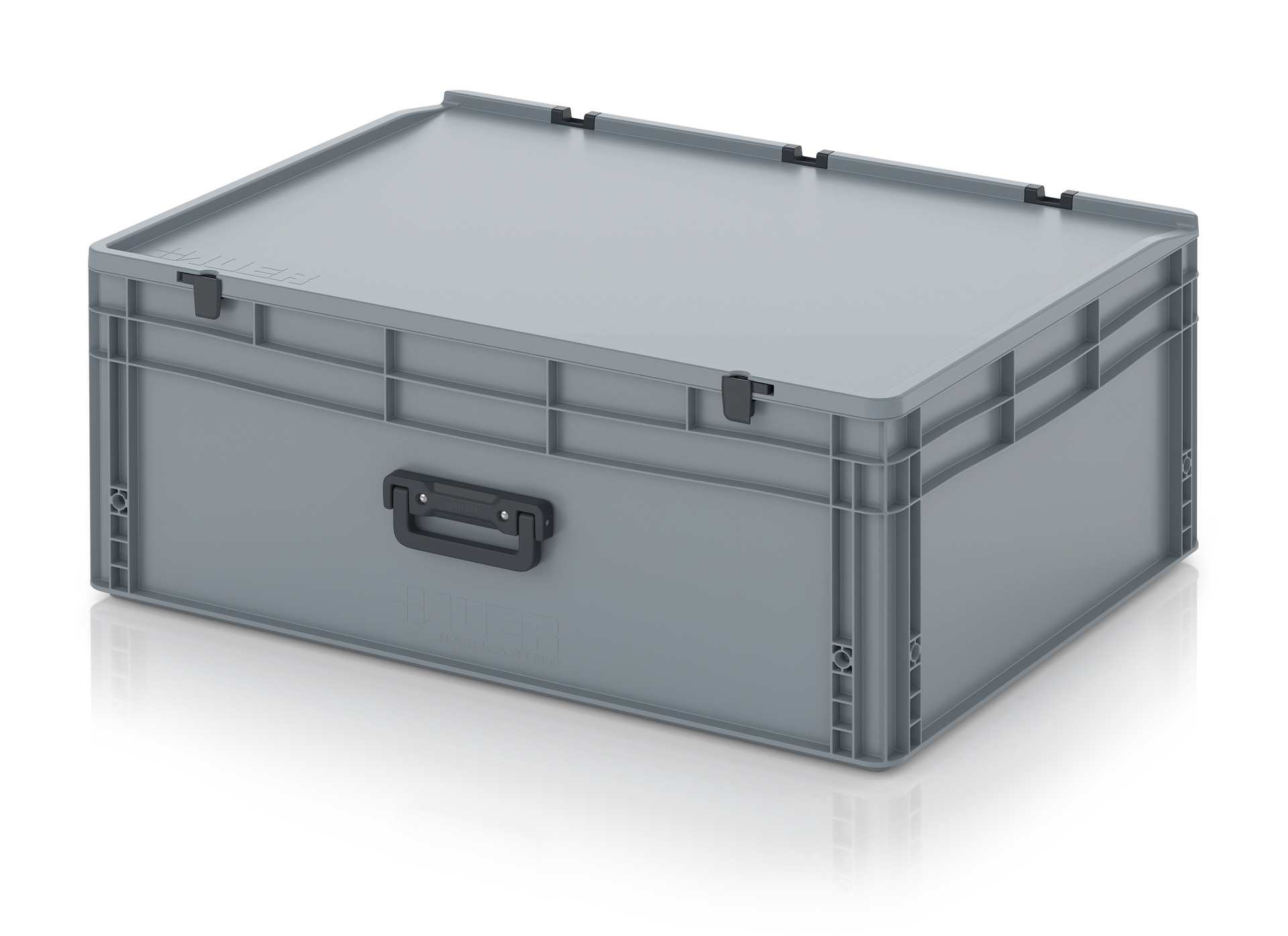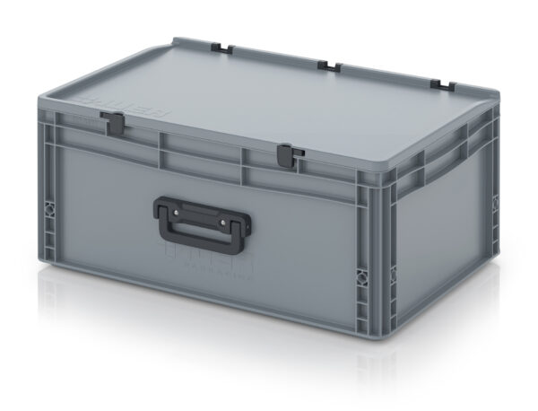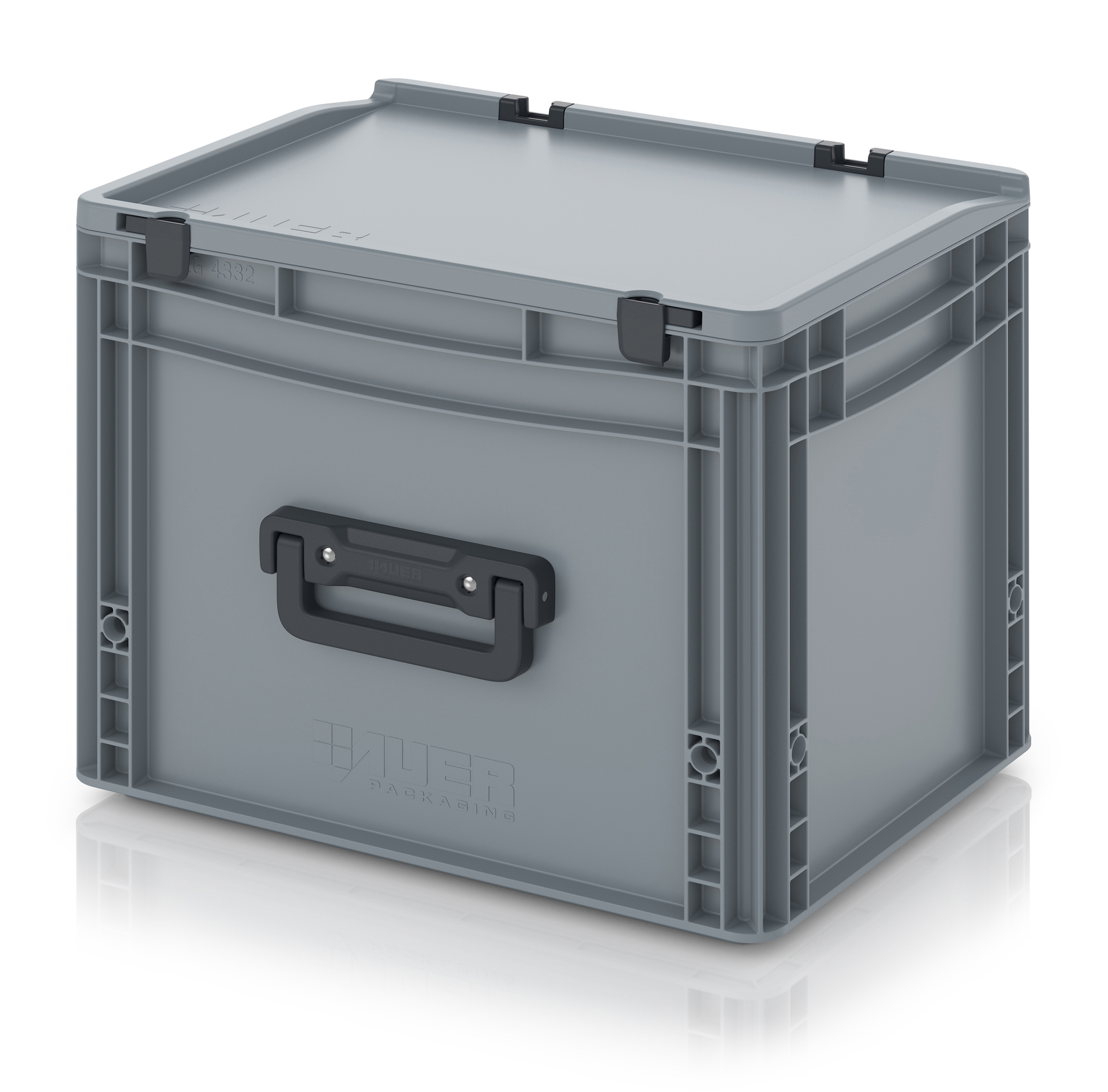 Evrozaboji v obliki kovčka s priročnimi ročaji omogočajo varno in udobno nošenje – tudi težje vsebine. Za zavarovanje vsebine je pokrov mogoče pritrditi z dvema tečajema in dvema zaskočnima zapiraloma. Možnost skladanja tudi s pokrovom, zaprte prijemalne odprtine, različni ročaji, posebej trpežno.