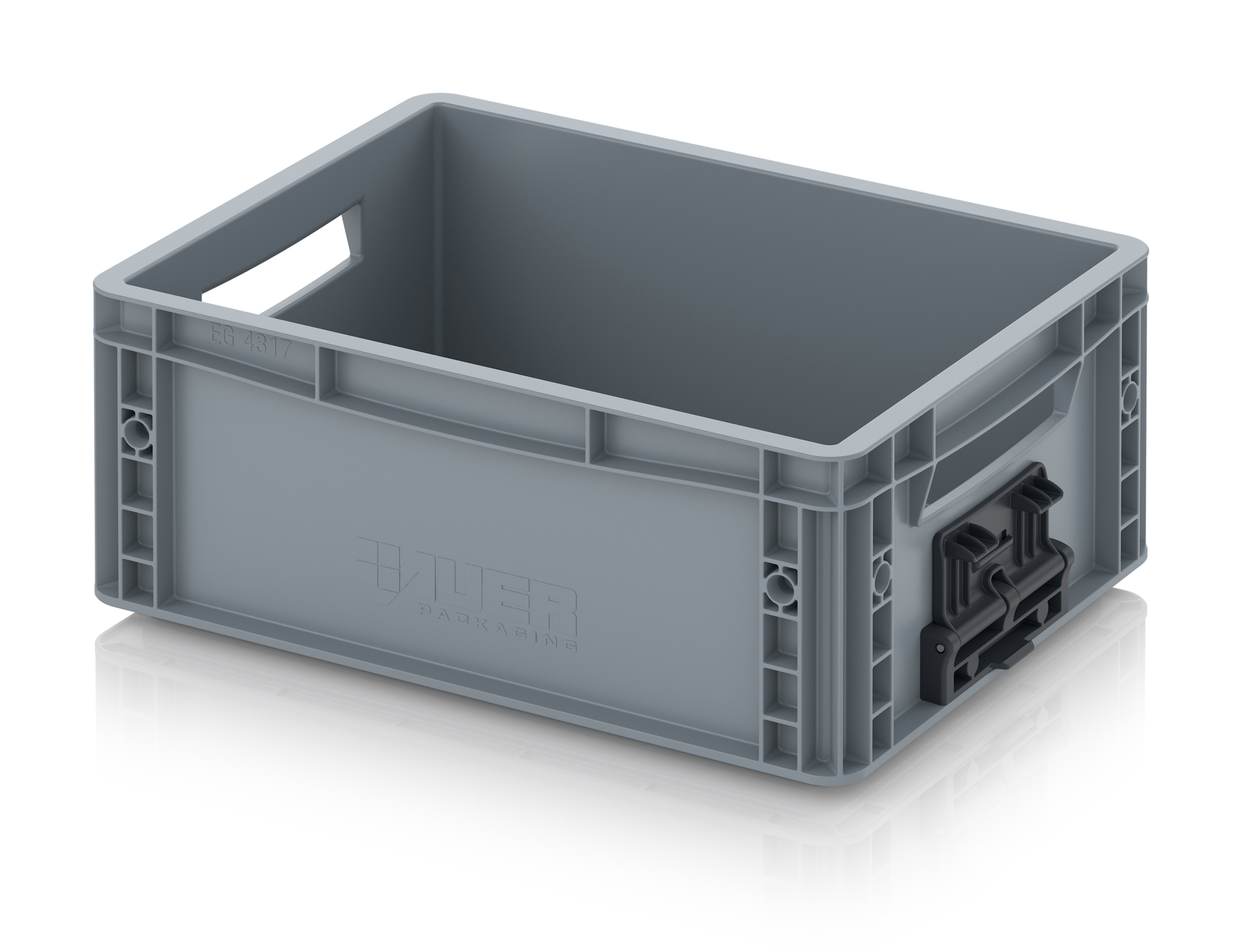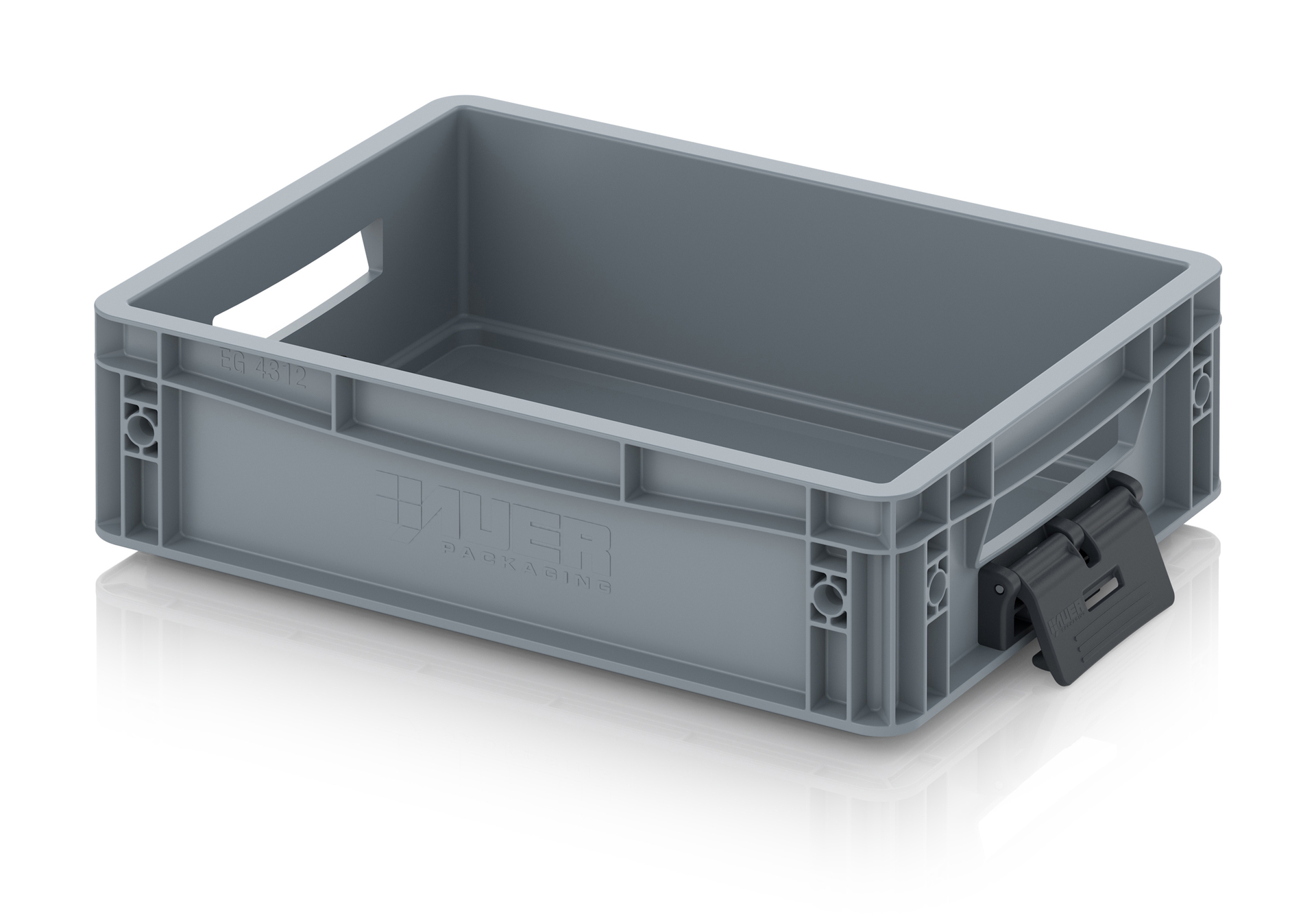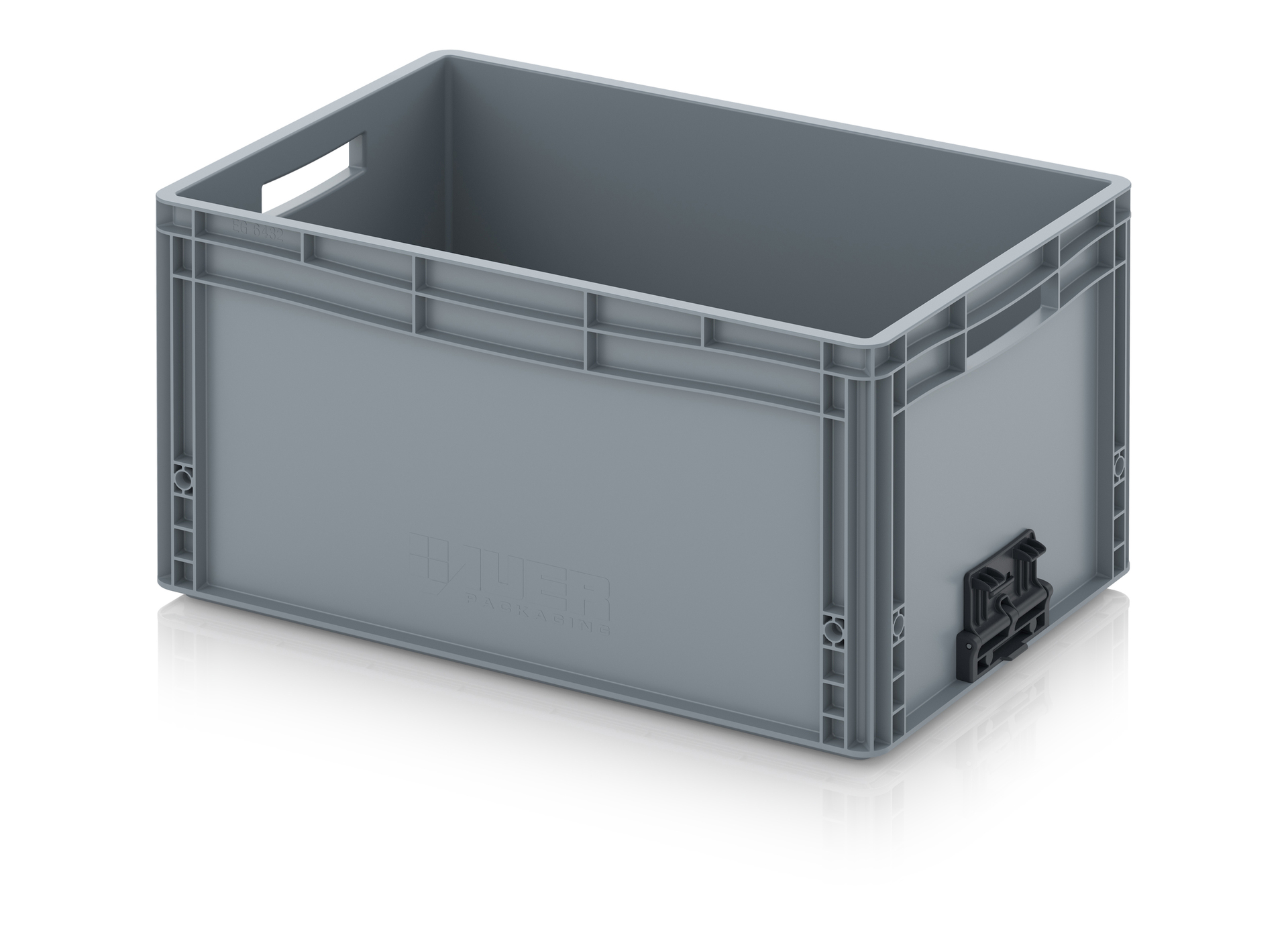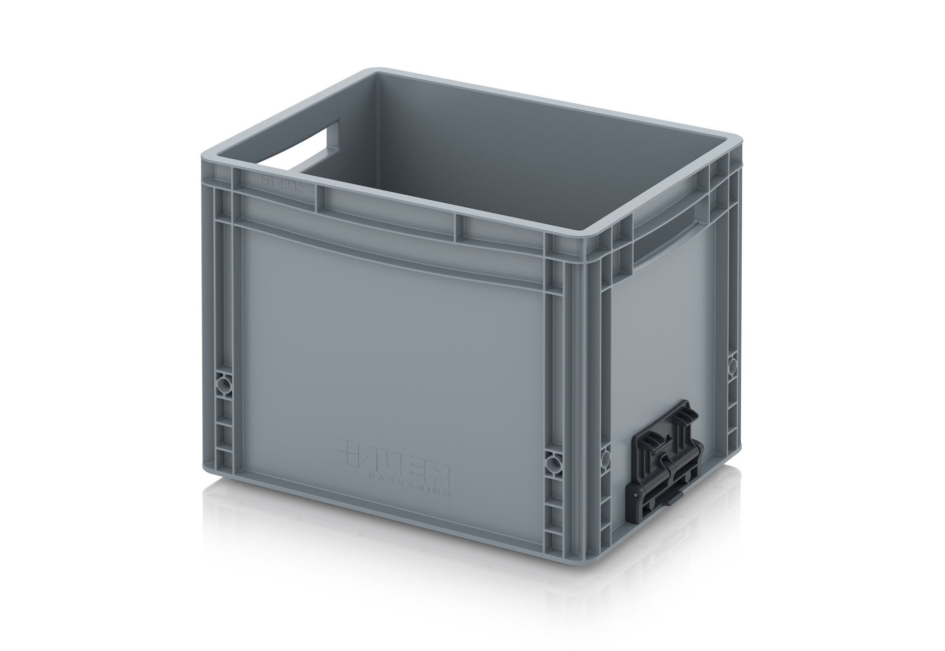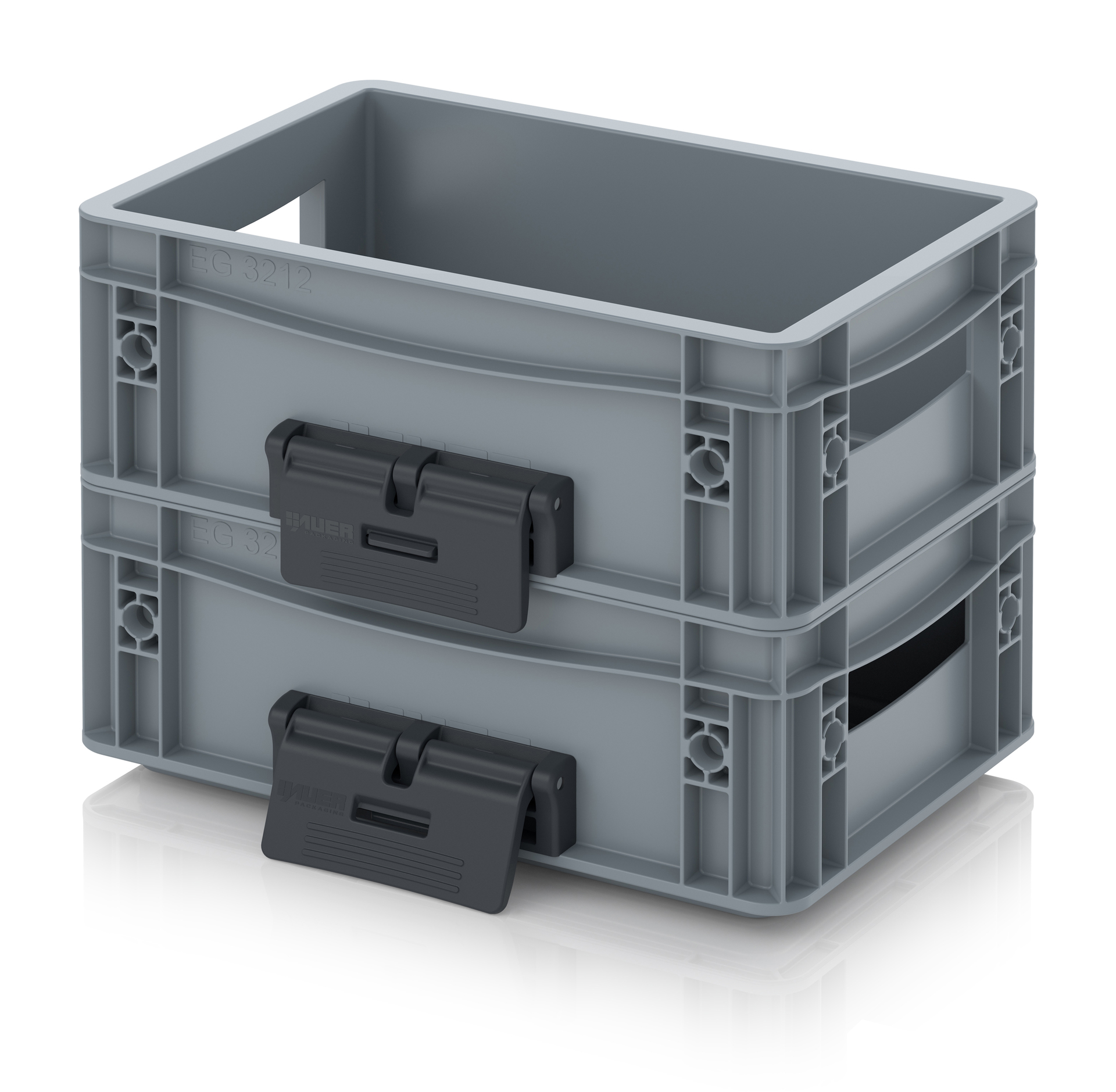 Če evrozabojev ne želite le zlagati drug na drugega, temveč jih želite tudi tesno povezati med seboj, pride prav združevalni sistem. Z zgolj eno potezo lahko sistem zaprete ali pa ga odprete in iz zloženih evrozabojev napravite kompakten stolp, s katerim je mogoče rokovati kot s samostojnim vsebnikom. Trdno, zanesljivo združevanje, hitro in preprosto zapiranje ter odpiranje, izboljšano rokovanje z zaboji, naloženimi drug na drugega.