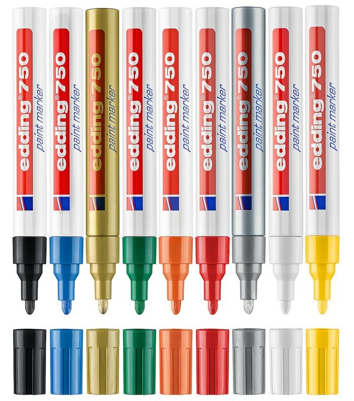 Flomaster Edding 750 ima aluminijasto ohišje in je s svetlečim lakom primeren za pisanje, slikanje in dekoracijo po steklu, keramiki, plastiki, kovini in vseh ostalih gladkih površinah bodisi za domačo ali industrijsko uporabo. Permanentni tuš je šibkega vonja, se hitro suši, ima izredno sposobnost lakastega prekrivanja ter je odporen je na vodo, praske in vročino. Marker je potrebno pred uporabo pretresti ter s konico nekajkrat pritisniti ob trdo podlago.