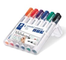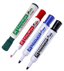 Cenovno ugoden piši-briši marker s okroglo konico debeline 2,5 mm, za pisanje po belih tablah ter drugih gladkih površinah. Črnilo se hitro zbriše s krpo ali čistilno gobico.