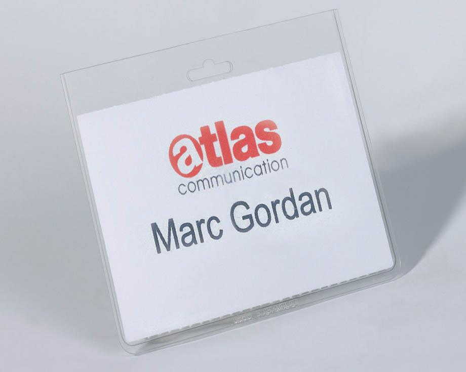 Plastični ovitki za vstavljanje imenskih indentifikacijskih kartic. Izdelani so iz trde transparentne PVC folije. Na zgornji strani imajo izsek za vstavljanje traku s priponko ali tekstilnega traku. Za lažje oblikovanje in tisk vložnih listkov lahko uporabite predloge na spodnji povezavi: https://www.durable-uk.com/services/duraprintreg-badge-making-software.html