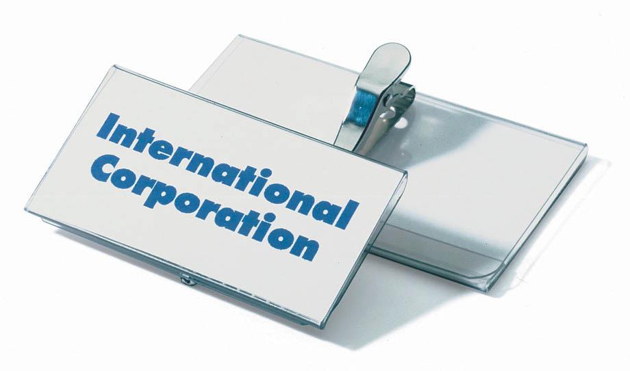 Plastični ovitki za vstavljanje imenskih identifikacijskih kartic. Izdelani so iz trde plastike Na zgornji strani imajo vstavljeno krokodil sponko na plastičnem traku.