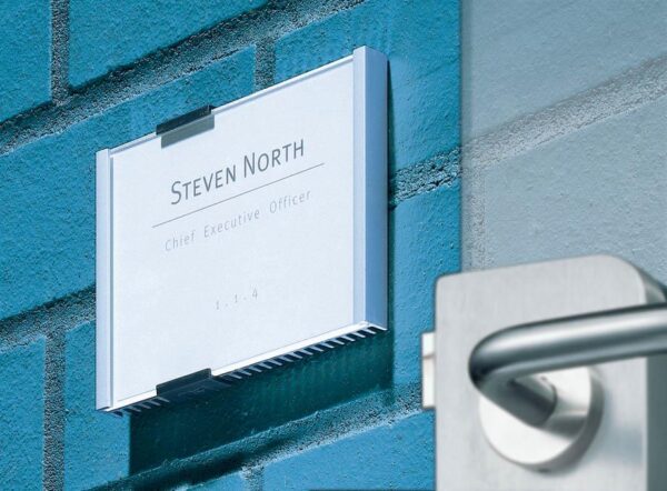 Praktične imenske ploščice izdelane iz visokokakovostnega aluminija. Primerne so za označevanje vrat konferenčnih sob, seminarjev in blagajne ali pa za označevanje izdelkov v izložbah, na sejmih ipd.