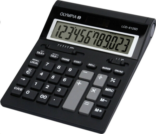Namizni kalkulator Olympia LCD 612 SD z velikim 12-mestnim LCD zaslonom in mehkimi zanesljivimi tipkami vam ponuja možnost enostavnega in hitrega preračunavanja z uporabo številnih računskih operacij in vgrajenih funkcij. Pregleden kalkulator z odlično razporeditvijo velikih tipk bo poskrbel za nazorne in hitre izračune.
