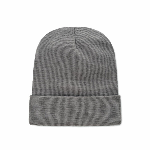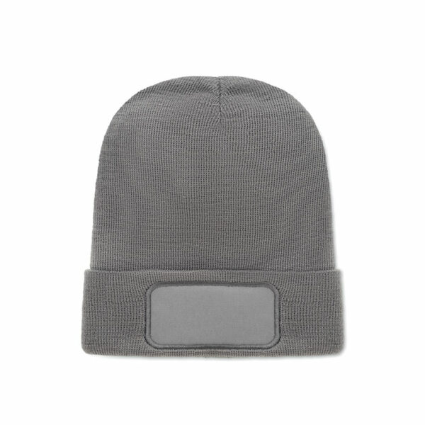 Unisex pletena kapa iz mehkega raztegljivega RPET poliestra z manšeto in našitkom.