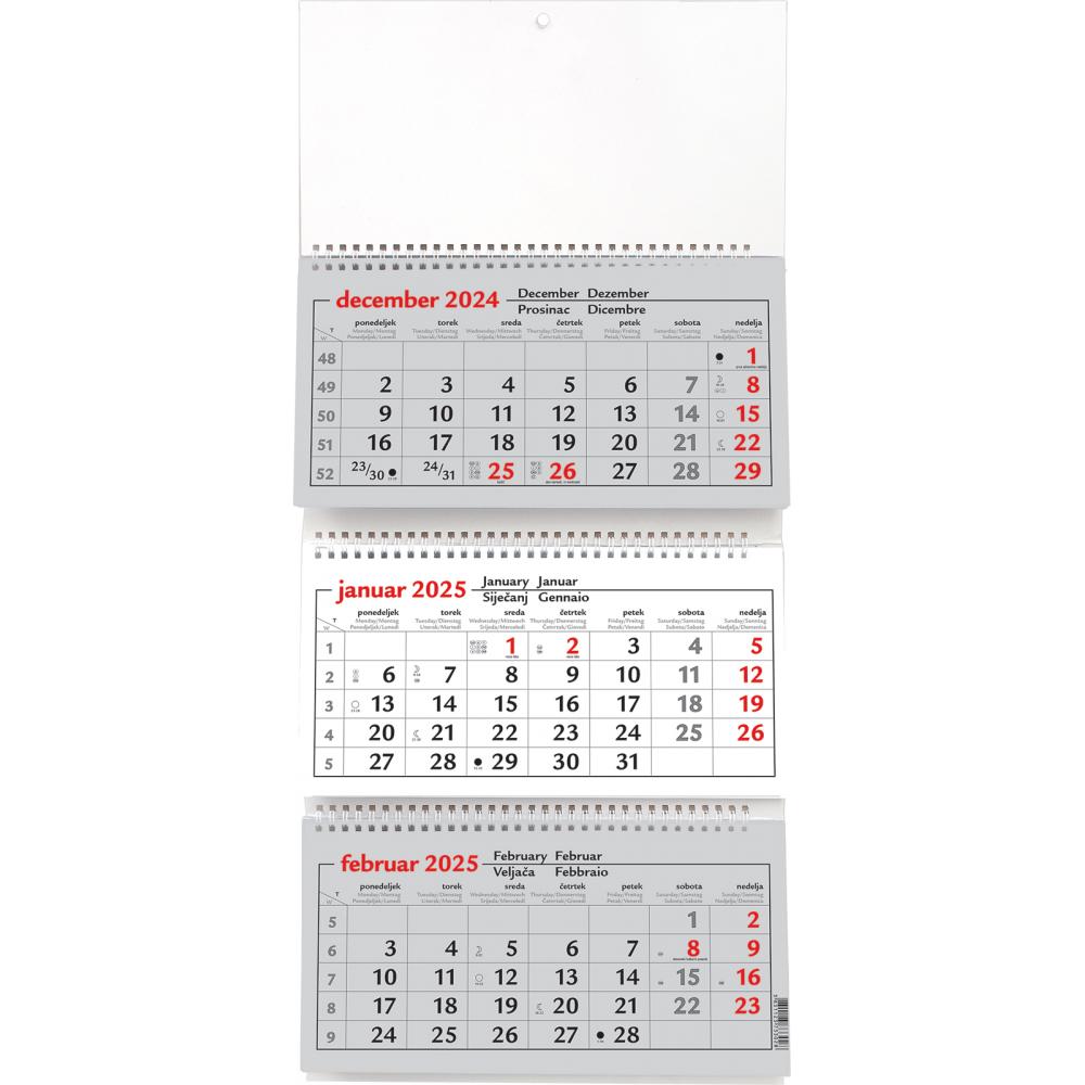 Tridelni stenski špiralni koledar z označevalcem dneva.