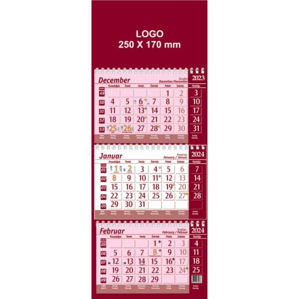 KOLEDAR 3-DELNI ŠPIRALNI RDEČ