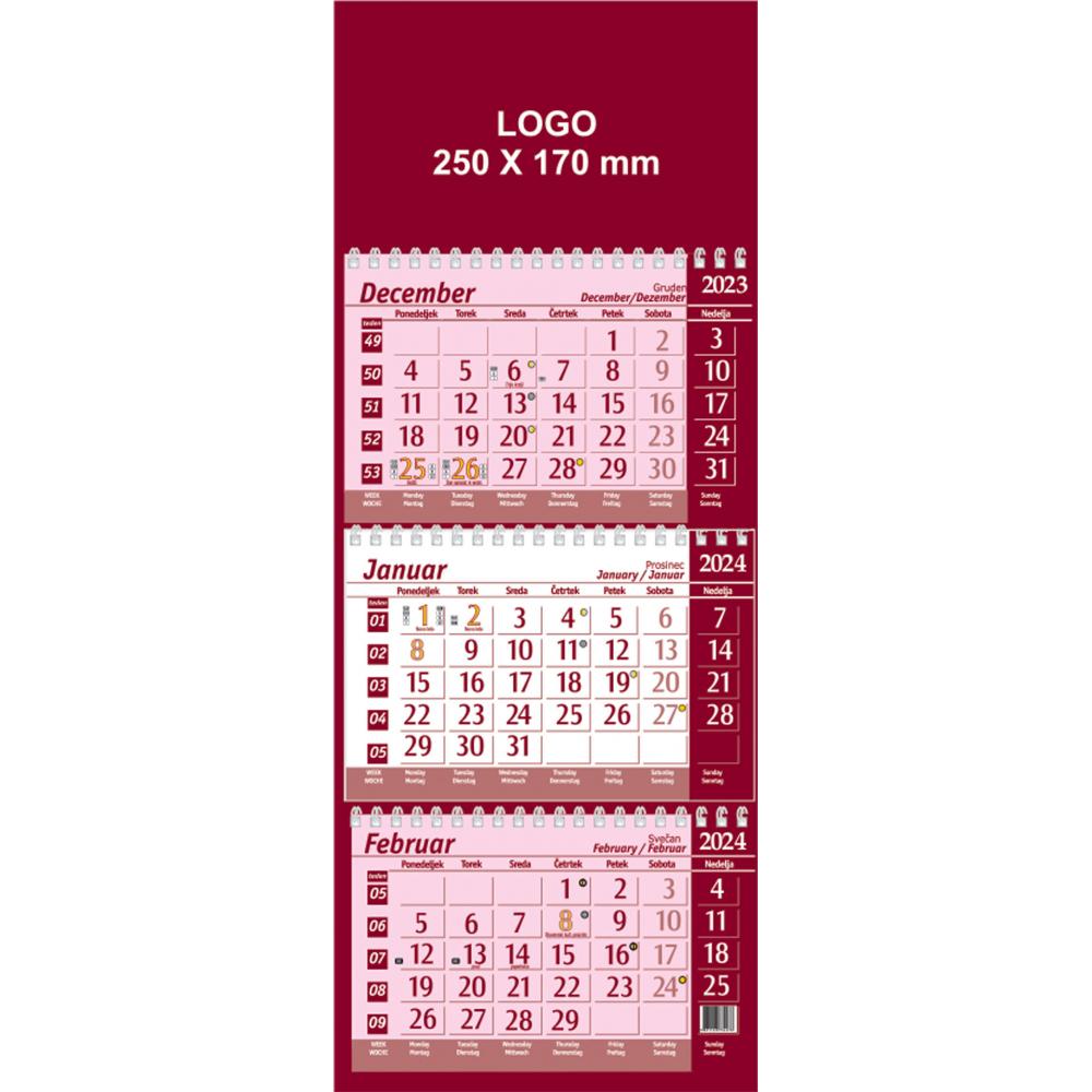 Tridelni stenski špiralni koledar z označevalcem dneva.