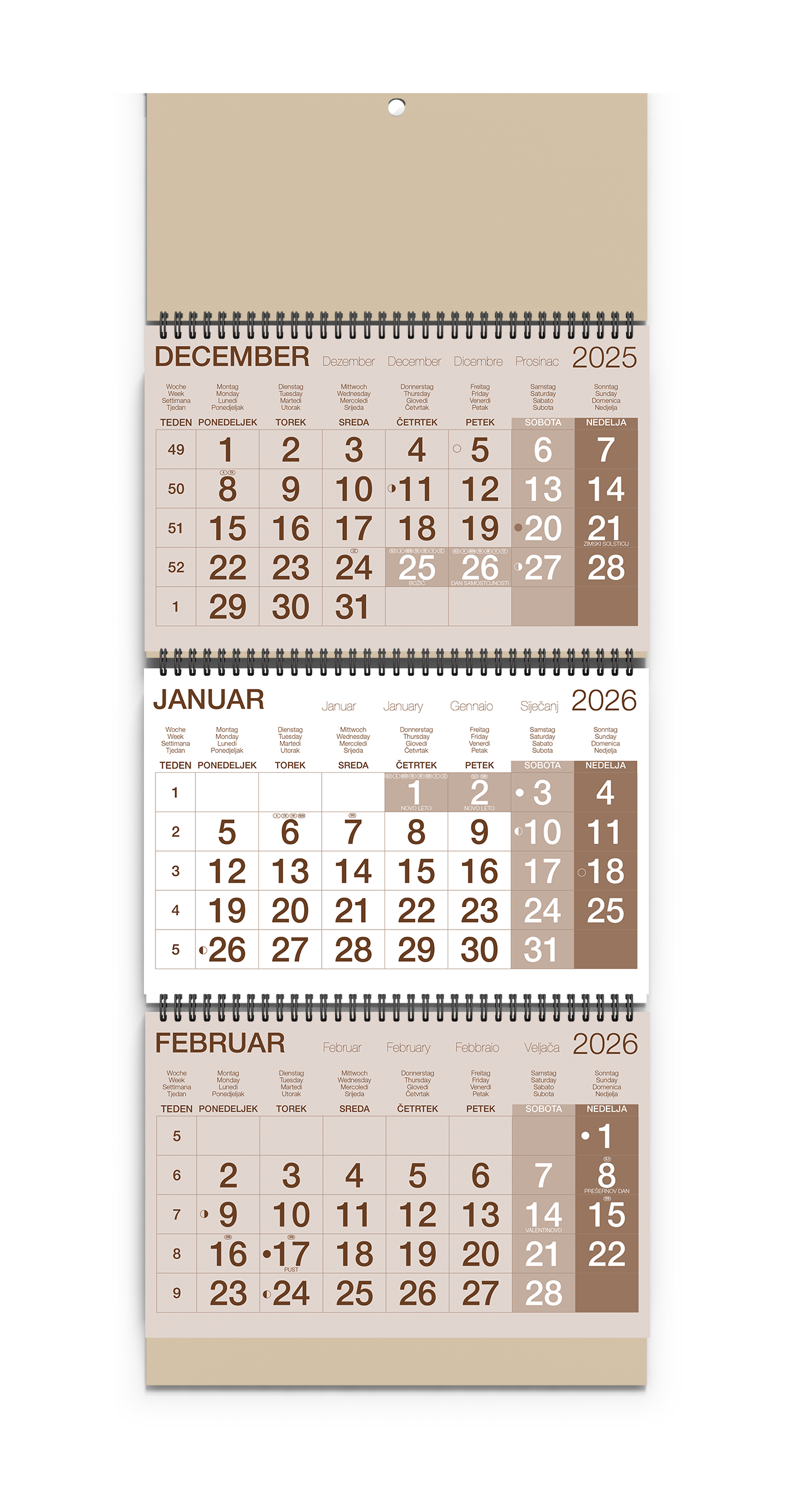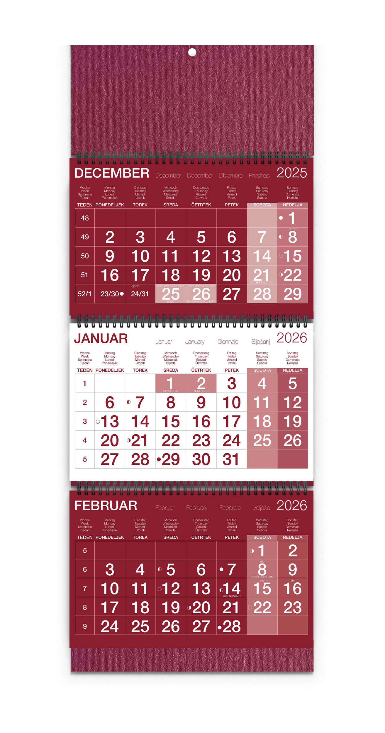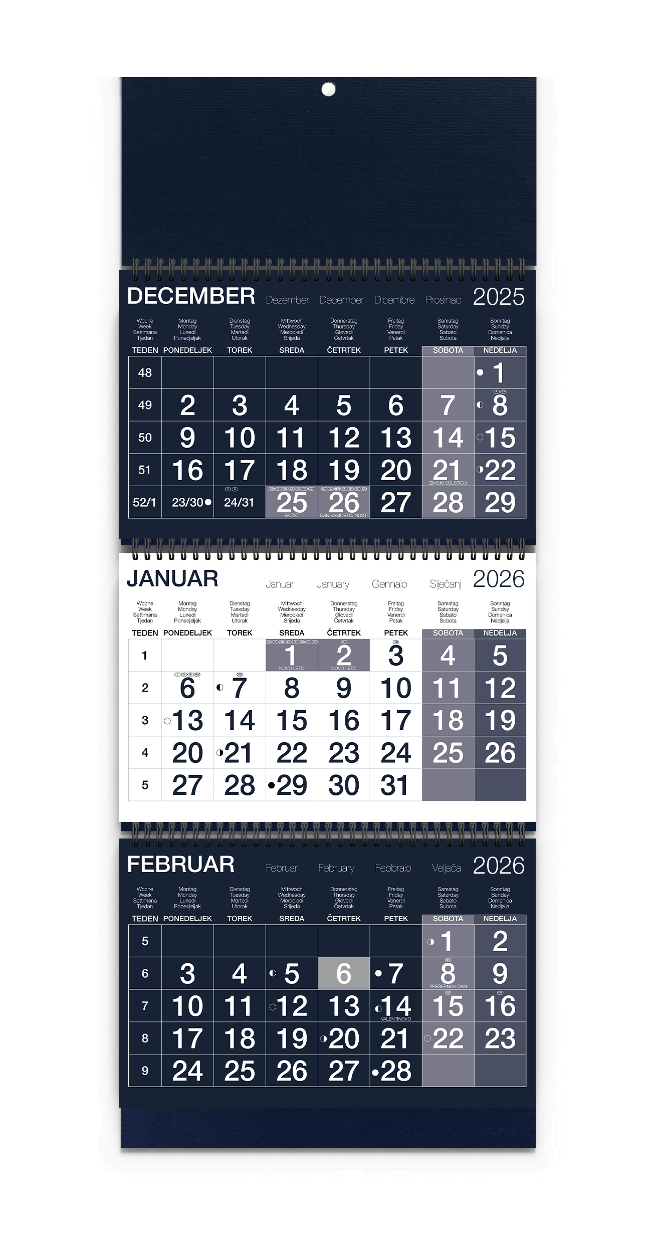 Domov » Promocija » Koledarji » NAMIZNI » KOLEDAR 3-DELNI ŠPIRALNI SK BARVE