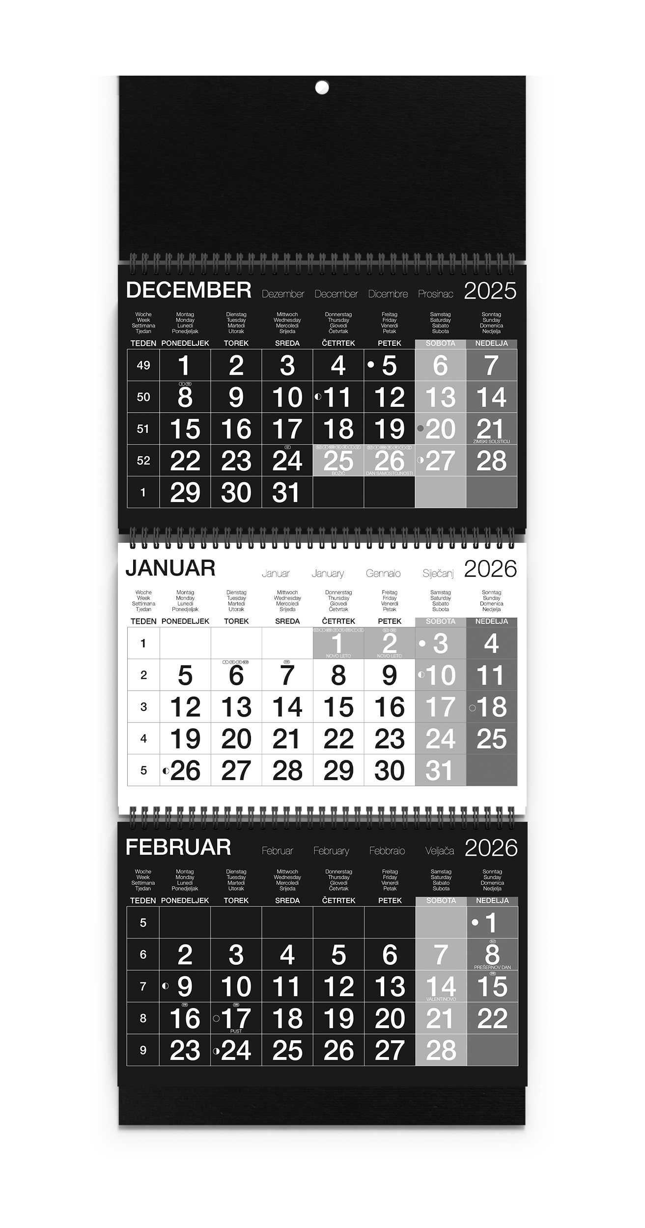 • KOLEDAR 3-MESEČNI ŠPIRALNI SIV