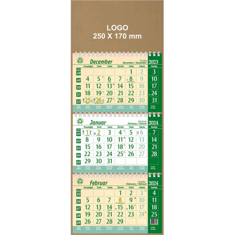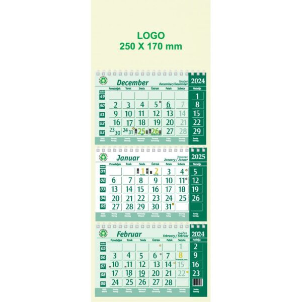KOLEDAR 3-DELNI ŠPIRALNI ZELEN