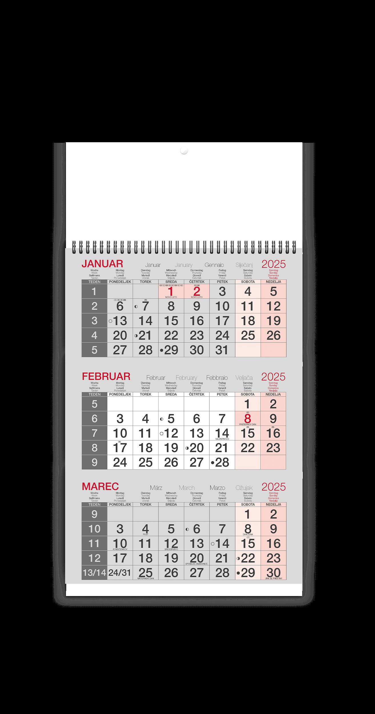 KOLEDAR 3-MESEČNI ŠPIRALNI BEL