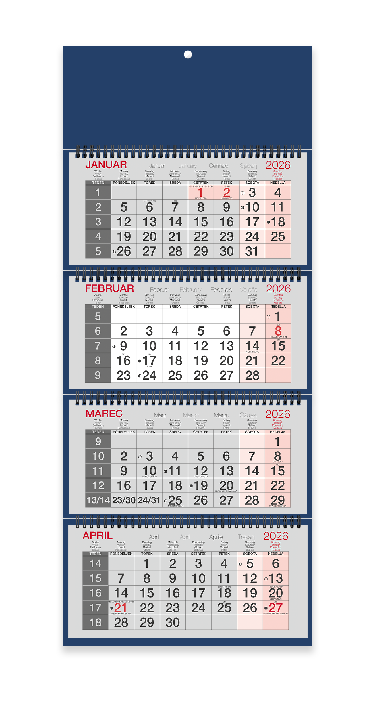 KOLEDAR 4-DELNI ŠPIRALNI MODER