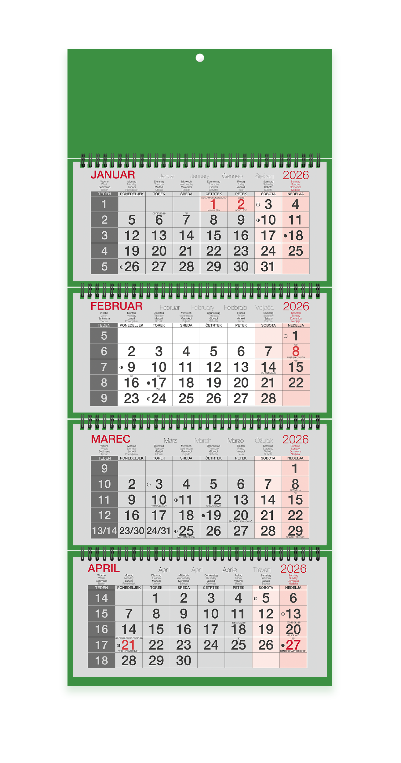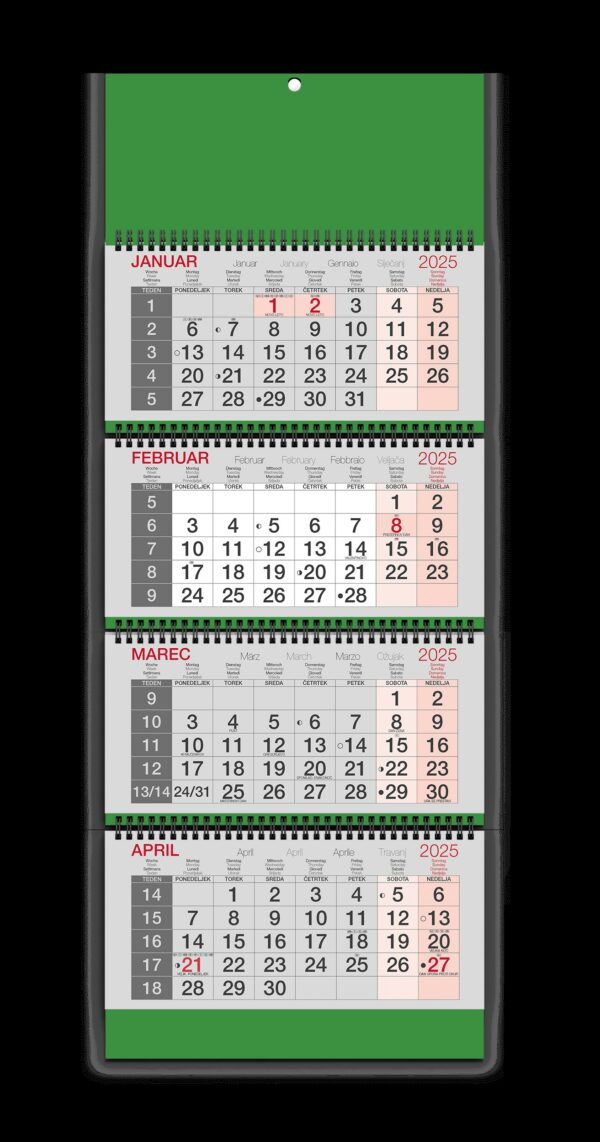 KOLEDAR 4-DELNI ŠPIRALNI ZELEN