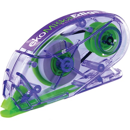 Korekturna miška s trakom za popravljanje vseh tipkanih in ročno pisanih tekstov. Omogoča enostavno in natančno nanašanje korekturnega sredstva s strani. Suha biokorektura na katero lahko takoj pišete.