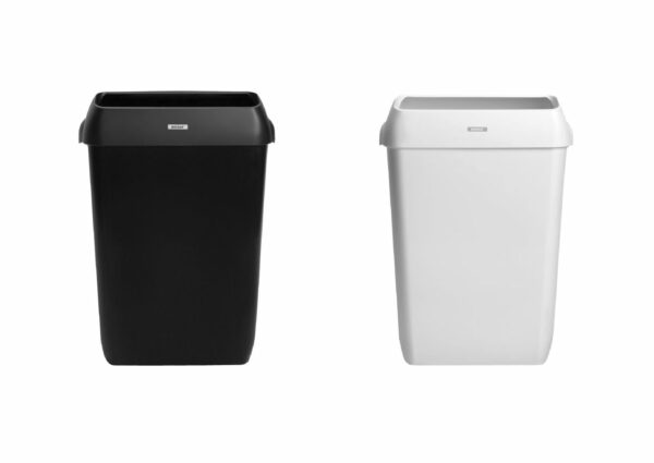 Koš s pokrovom iz ABS-plastike. Lahko se pritrdi na steno. Elegantna oblika, posebej oblikovana za žensko stranišče. Koš je lahek in enostaven za praznjenje. V kombinaciji s Katrinovimi podajalniki za papir linije Inclusive ustvarja popoln videz prostora.
