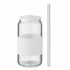 Kozarec iz borosilikatnega stekla s silikonskim pokrovom in držalom. Vključuje slamico iz borosilikatnega stekla.