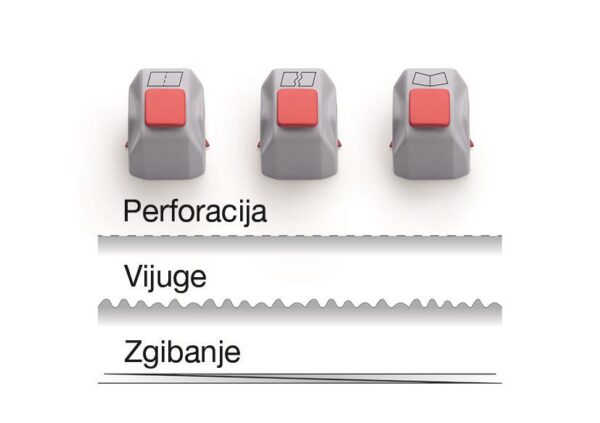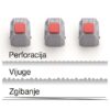 Set treh nadomestnih rezalnih glav za rezalnik Dahle 507. Vsebuje po en nastavek za rezanje: cikcak, perforacijo in valove.
