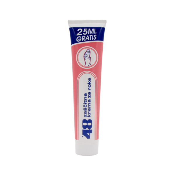 48 zaščitna krema za roke na koži naredi zaščitno plast, ki jo ščiti pred škodljivimi snovmi in umazanijo, pri tem pa ne ovira normalnega delovanja kože. Uporabljamo jo pri domačih delih in v industriji.