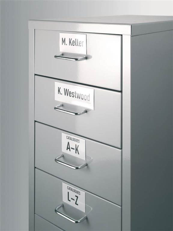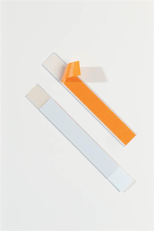Visokokakovostne samolepilne letvice za označevanje polic s papirnatimi vložnimi lističi, na katere je mogoče tiskati tudi s tiskalnikom. Letvice imajo odprtino na straneh in na zgornjem delu, da zagotovijo enostavno vstavljanje in zamenjavo.