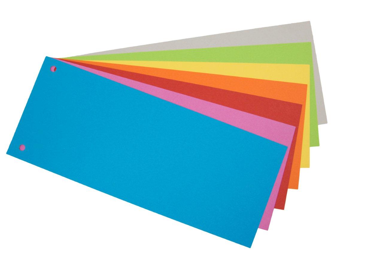 Enobarvni ločilni listi različnih barv, dimenzij 245x100mm, za ločevanje dokumentov, izdelani iz kvalitetnega 225gr kartona v pastelnih barvah.