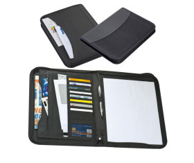 Poslovna mapa A4 z vložnim blokom in zapiranjem na zadrgo. Notranji žepki so idealni za shranjevanje vseh potrebščin za poslovne dogodke.