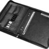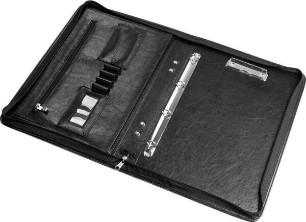 Poslovna mapa A4 iz PU v videzu umetnega usnja s kalkulatorjem in vložnim blokom z zapiranjem na zadrgo. Notranji žepki so idealni za shranjevanje vseh potrebščin za poslovne dogodke.