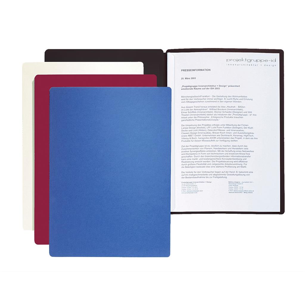 Pagna predstavitvene mape, idealne za nadaljnjo obdelavo pomembnih dokumentov kot so ponudbe ali ceniki so izdelane iz satiniranega kartona, z vpenjalno letvico na desni strani, da vam dokumentov ni potrebno luknjati.