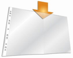 Mapa L za vlaganje gradiva z zgornje in stranske strani, brez stranskih lukenj za shranjevanje dokumentov do formata A5. Izdelana je iz trpežne mat 110mic debele PVC folije.