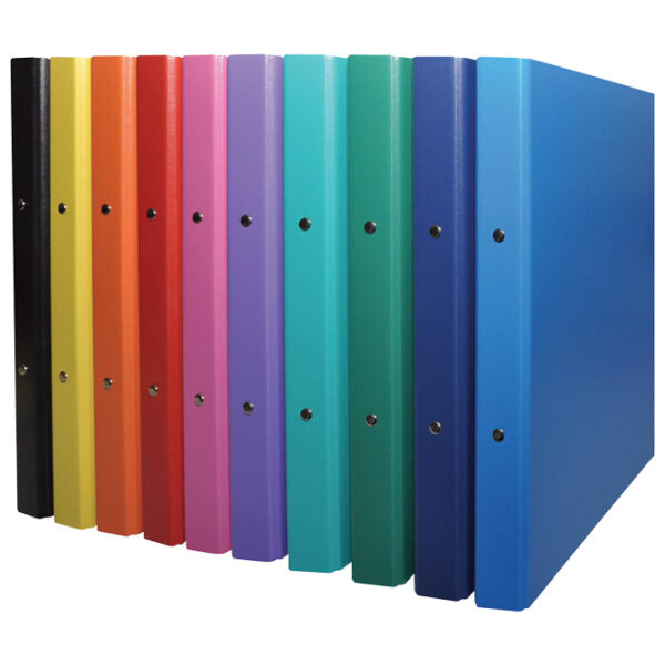 Barvna plastificirana mapa za shranjevanje gradiva formata A4. Izdelana je iz reciklirane lepenke, debeline 1,9mm, kaširane v papir na zunanji strani prevlečena z mat polipropilensko folijo debeline 100 mikronov, na notranji strani prevlečena z ofsetnim papirjem 100gr . Okrogel dvorinčni mehanizem, premera 25mm omogoča shranjevanje do 21mm (cca. 190 listov 80g papirja) gradiva.