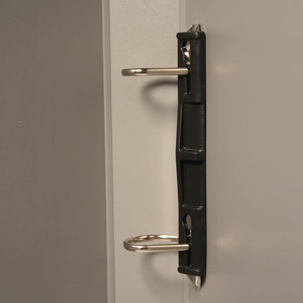 Barvna plastificirana mapa za shranjevanje gradiva formata A4. Izdelana je iz reciklirane lepenke, debeline 1,9mm, kaširane v papir na zunanji strani prevlečena z mat polipropilensko folijo debeline 100 mikronov, na notranji strani prevlečena z ofsetnim papirjem 100gr . Okrogel dvorinčni mehanizem, premera 30mm omogoča shranjevanje do 21mm (cca. 190 listov 80g papirja) gradiva.