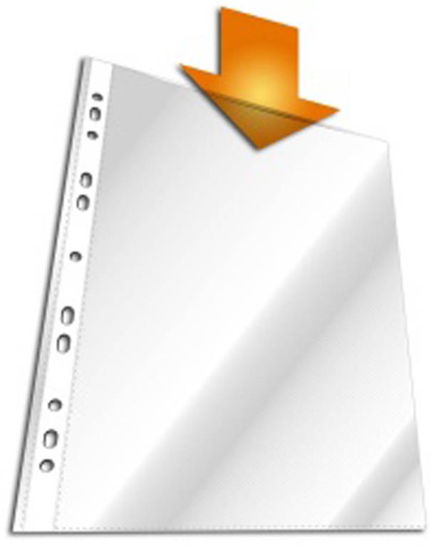 Vložna mapa U za vlaganje gradiva z zgornje strani, s stranskimi luknjami za shranjevanje dokumentov do formata A4 v registrator ali mapo. Izdelana je iz antistatične polipropilenske folije debeline 60mic.